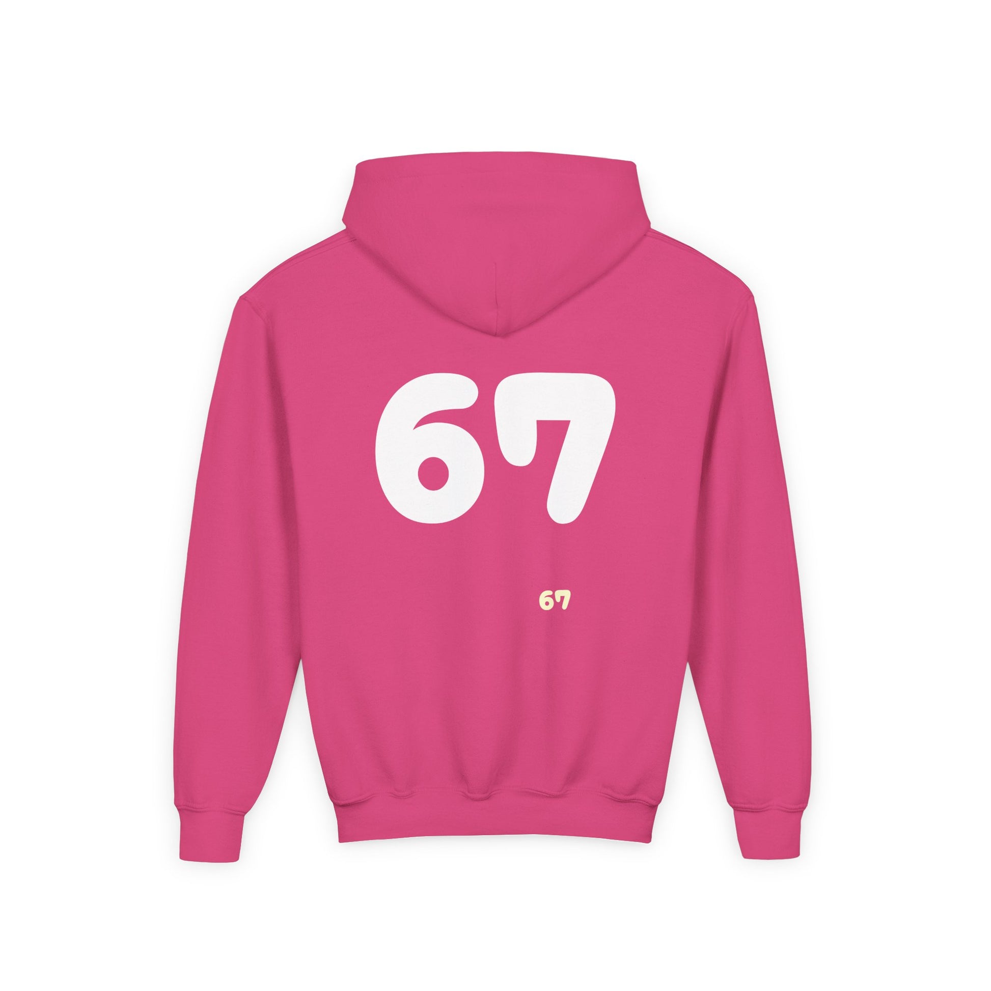 A cozy and warm hoodie featuring the number 67 design. Perfect for casual wear or lounging at home. Ideal for youth and teenagers, great for birthdays, holidays, and everyday occasions.